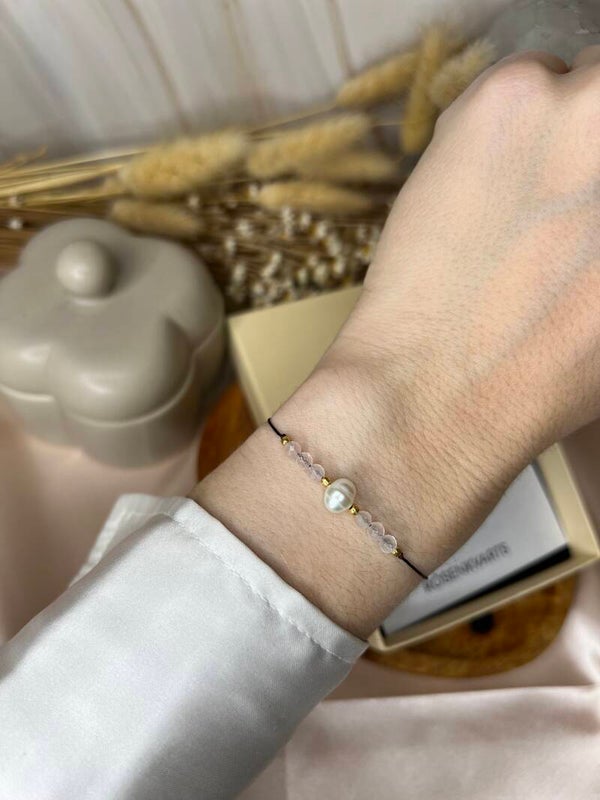 Et delikat og harmonisk armbånd laget spesielt for Tyren. Håndlaget med rosenkvarts, perle og gyldne glassperler som beholder glansen sin. Den myke rosafargen gir smykket et feminint og varmt uttrykk – perfekt for en jordnær og sanselig Tyr.