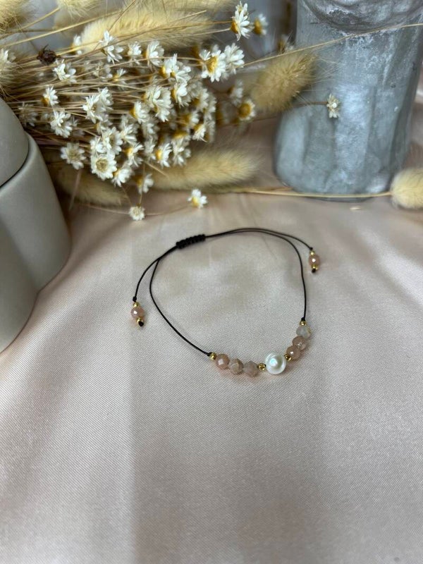 Et mykt og harmonisk armbånd laget spesielt for Vekten. Håndlaget med solstein, perle og gyldne glassperler som aldri mister glansen. Den varme fersken–beige tonen i solsteinen gir armbåndet et delikat og feminint uttrykk – perfekt for Vektens sans for estetikk, balanse og eleganse.
