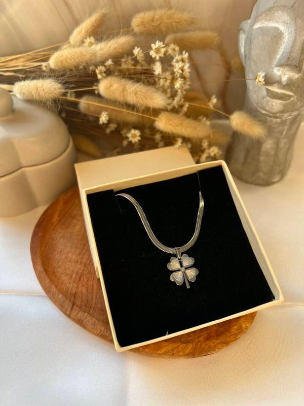 Felicia silver er et delikat sølvkjede med et firkløveranheng – et tidløst symbol på flaks, gode energier og positive vibber. Den elegante sølvfinishen gir smykket et moderne og rent uttrykk, perfekt for både hverdag og fest.